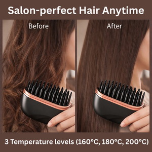 Mini Wireless Hair Straightening Brush with 3 Temperature levels (160°C, 180°C, 200°C)